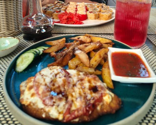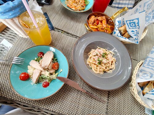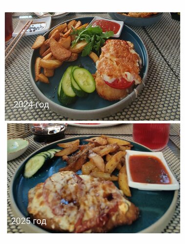 Когда бываем в Анапе, всегда посещаем это заведение. Нравятся роллы, пицца, вторые блюда и лимонады. В этот приезд были три раза. Первый раз заказывали бизнес-ланч. В целом не плохо, хорошие порции, вкусно. Во второй раз заказывали на вынос пиццу и фри. Всё быстро приготовлено и вкусно. А вот третий раз пришли на ужин и немного было разочарование по одному любимому блюду - отбивная по -милански. В прошлом году было намного лучше и на вкус и на вид (фото). В этот раз блюдо немного пережарили, от чего сама отбивная была суховата. Доверяем этой сети, поэтому надеюсь, что нас услышат и в следующее посещение будет всё вкусно на 100%) Официанты - молодцы, внимательные, быстрые, заботливые (видели как они принесли воды маленькой собачке гостьи, очень трогательно и по человечески). Официантам отдельный респект.