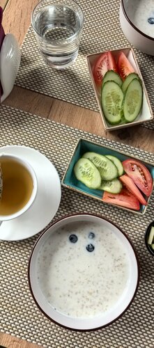 Приходили вдвоём с подругой. Еда понравилась вся. Салат из морепродуктов приятно удивил количеством тех самых морепродуктов) Пельмени из ягнёнка наисвежайшие. Салат с действительно хрустящими баклажанами вкуснятина. Персонал приветливый и расторопный.