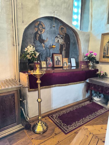 Чтобы попасть к церкви нужно свернуть до ограды Тригорского направо на дорожку, по ней минут 10 до кладбища и церкви. На кладбище семейное захоронение Осиповых-Вульф, могила Гейченко с супругой.