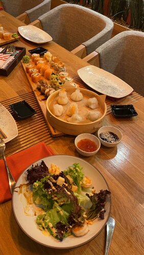Очень нравятся роллы,сеты и салат кумотори 😄 Ресторан очень тихий,уютный.Всегда приходим с семьей сюда чтобы вкусно покушать и провести время ,а также заказываем домой🍱