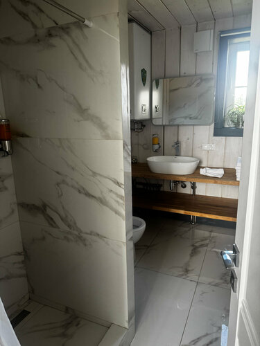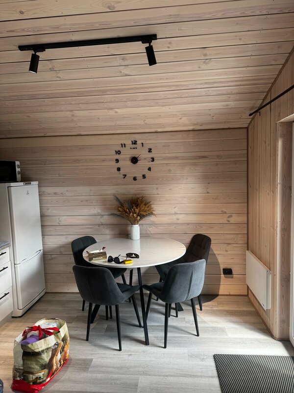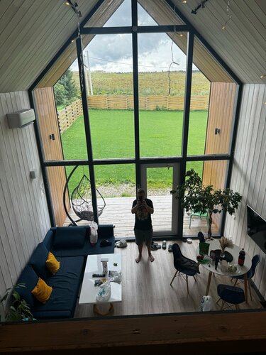 Отмечали день рождения компанией из 6 человек с 8 по 10 августа 2025г. Вначале плюсы: удобно добираться, часть дороги с грунтовым покрытием небольшая, тем более была сухая погода. В слякоть будут нюансы. Территория базы огорожена и так же у каждого дома есть своя обособленная территория с красивым газоном. Снимали барн большой №1. Дом просторный, уютный, в нем чисто и много света, есть посуда, капсульная кофемашина, кран с фильтрованной водой. Большая ванная комната, есть гель, шампунь, жидкое мыло. Удобная мангальная зона, стол с лавочками. На веранде широкое кресло-качель, супер. Теперь минусы: на двое суток на компанию из 6 человек положили почему-то 6 капсул, а не 12. То есть кофе вы попьете только в одно утро, а когда именно -решайте сами. Синтетическое постельное белье. Нет полотенец для ног. Но самое интересное-это дрова, лежащие под домом. Их, оказывается, брать нельзя! Зачем тогда они там? Мы брали 3-4 полена и без ненужных споров заплатили за них работнику базы 1000 рублей при выезде, что его вполне устроило. В целом место рекомендую, для компании отлично, много места, дом комфортный.