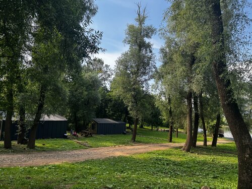 Отличное место! Расположение на Оке, с отличным песчаным пляжем (со стороны затона) и каменистым берегом со стороны самой реки. Место в большей степени рассчитано на рыбаков, в аренду можно взять водный транспорт и рыболовную амуницию. Отдыхали с 12 на 13 июля, сутки. Отдых пришелся на сильную жару, но глемпинг расположен среди деревьев, всегда тень и очень комфортно. Арендовали домик на берегу, возле дома мангал и большой стол. Сам домик маленький, но в нем есть все необходимое. Оптимально для размещения именно летом, так как все время проводишь или на пляже, или у мангала. Дом рассчитан на троих, но оптимально вдвоем. Из гигиенических принадлежностей только жидкое мыло и туалетная бумага. Гель/шампунь придется везти с собой. Есть средство для мытья посуды. Питьевую воду тоже лучше привезти. На территории грунт, специальных дорожек нет, в дождливую погоду будет грязь. Работник базы Владимир оперативно реагирует на просьбы (были проблемы с замком в доме). Место однозначно рекомендую, отличное местоположение и классный пляж с чистым песком и спокойной водой, комфортно плавать. Со стороны реки сильное течение и много водного транспорта, купаться страшновато, а берег - это камни и ракушки. Мы вернемся еще, хотя бы ради отличного пляжа.