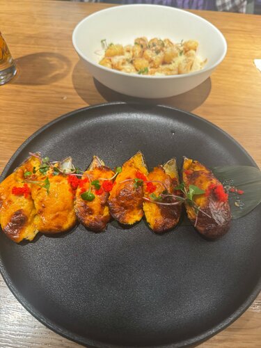 Хорошее место, борщ в пирожке - зачёт! Корочка у пирожка румяная и с чесночком, как у классической пампушки. Сам бульон тоже огонь. Макароны с сыром не зашли, точнее макарон в сырной палочке я не нашла( Порадовало, как объявляют о готовности заказа, заведение стоит посетить хотя бы раз, рекомендую!