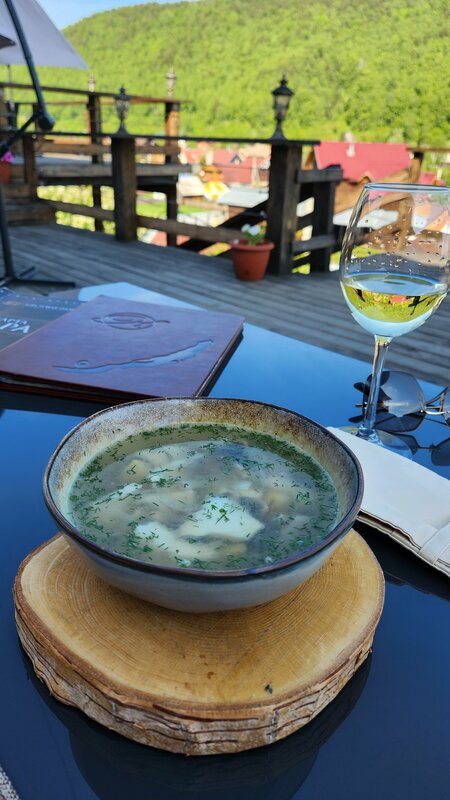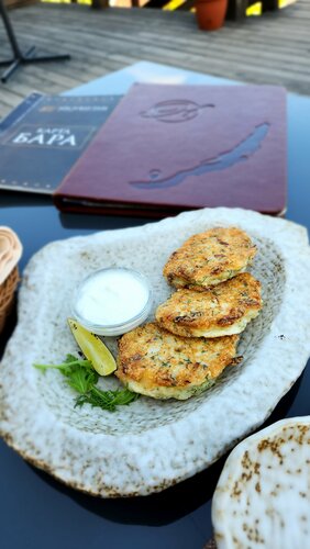 Классное место, тихо, спокойно, умиротворенно. Что ещё нужно в таком месте? Вкусная кухня. Брал салат мясной с папоротником, уху из байкальской рыбой и драники тоже с рыбой. Не семгу же на Байкале есть! Выше всяких похвал. Сидели на открытой веранде. Столики некоторые неудобные, ноги не куда поставить. Цены соответствуют блюдам, месту и интерьерам. В остальном- 5 звёзд.