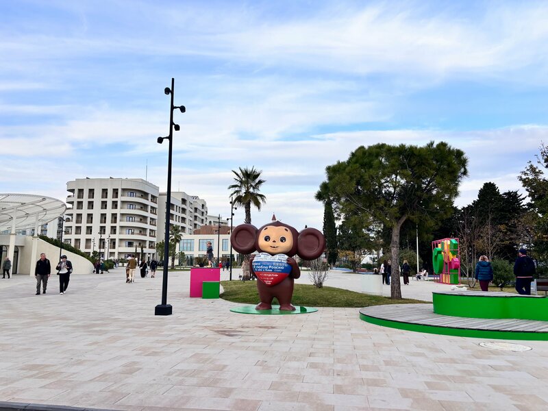 Милый Чебурашка. Детский артефакт. Удобно для обозначения места встречи. Многолюдно. Нравится, что в стране сейчас обозначают так интересно места