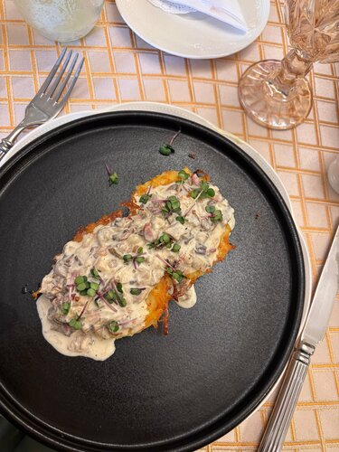 Отличное место. Красивый интерьер , открытая кухня, классная музыка и очень вкусная еда. Ресторан держит уровень хорошего ресторана годами, что бывает крайне редко. Сегодня были на ужине. Нас обслуживал официант Фархад. Огромное ему спасибо за рекомендацию блюд. Все, что он порекомендовал было просто супер. Мы брали суши из мраморной говядины и фуа-гра, это что-то новое по вкусу , брать пробовать обязательно, также тар тар из копченого угря, огурца и страчателлы - 10/10. Еще мы ели пасту с пастрами тоже супер, хотя я обычно не люблю с томатным соусом и мясом, но это правда очень вкусно было. Ну и конечно же как же без фирменного сметанника из Горыныча, это любовь просто на года, готова за ним возвращаться вновь и вновь. Спасибо за прекрасный ужин и отличный сервис.♥️