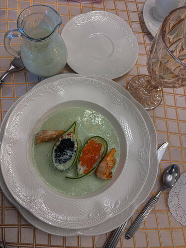 Хорошее место. Красивый интерьер. Но скатерти по-моему надо менять на более современные. Очень вкусная еда. Обычно в Суздале рестораны просто атмосферные с достаточно обычной по вкусу едой, но здесь реально очень вкусно. Рекомендую. Персонал медленно и неохотно работает, но повару респект. Спасибо за вкусный обед. Единственный минус заказали чайник черного чая. Принесли незаваренную воду с пакетиком внутри, толком ничего не заварилось, попросили добавить туда пару хотя бы пару пакетиков еще. В итоге посчитали чай из пакета заваренный в чайнике 1200р. Это было неприятно.