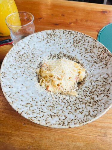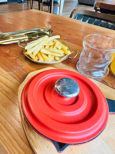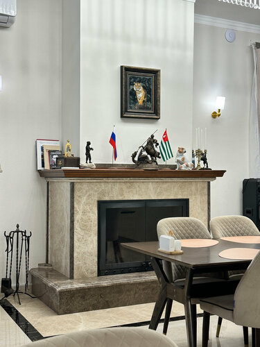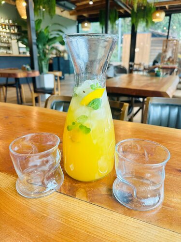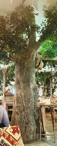 Место в самом центре Афона, интерьер современный, приятный, что особенно заметила в вазах искусственные букеты исключительно из местных фруктов: мушмула, гранат, хурма. Чистые туалетные комнаты со всем необходимым. В зале удобные стулья и красивые столешницы из спилов деревьев. Еда вкусная, свежая, посуда оригинальная, подача стандартная, цены приемлимые. Но есть минус, обслуживание быстрое, но очень нежеланное. Такое чувство что девушку заставляют здесь работать, ни слова, ни улыбки, просто как робот. За такое обслуживание 10% совсем не хочется платить!