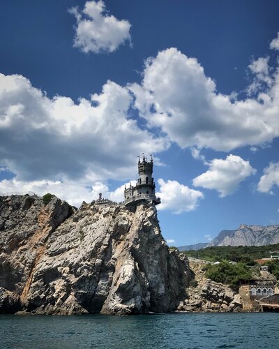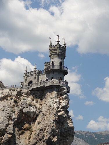 Замок «Ласточкино гнездо». Самый узнаваемый символ Крыма. Находится не далеко от Ялты. Расположен на 40-метровой скале Аврора. Мы были не один раз в этом готическом замке, но самый лучший вид открывается с воды. Включите посещение Ласточкиного гнезда в свою прогулку по Большой Ялте, не пожалеете. Интересный факт, здесь снимали фильм «Десять Негритят», режиссер Станислав Говорухин.