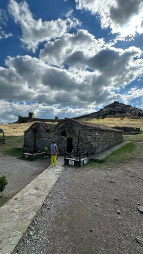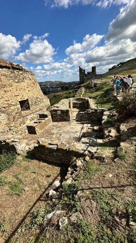 Судакская крепость. Очень интересный исторический объект, с впечатляющей много вековой историей. Пересказывать ее историю не имеет смысла, можно почить в интернете или лучше приехать и с экскурсией пройти по ее остаткам. Приехать можно на автобусе из Судака или Нового Света, номер 5 до остановки Уютное, стоимость билета 32₽ , от остановки 5 минут, можно на машине, есть парковка, она платная, 100₽ час, будьте внимательны, берут за полный час, даже если 5 минут от часа простояли, оплатить можно картой, или пешком с набережной, но оцените свои силы, дорога в горку. Вход в крепость стоит для взрослого без льгот 350₽, дети до 16 лет бесплатно, экскурсия оплачивается отдельно. Крепость занимает внушительную территорию, с собой обязательно головной убор и вода, особенно летом в жару. Впечатления отличные, история к которой можно прикоснуться, экскурсовод рассказывает интересно, идти придется либо в горку, либо под горку, обувь должна быть удобная. Много видовых площадок, на Судак, море и крепость, отличные фото гарантированы! На территории есть несколько не больших, бесплатных музеев, интересно. Перед выходом можно зайти в город мастеров, купить сувениры, дорого, но на память точно останется. Стоит ли приезжать? Однозначно стоит!