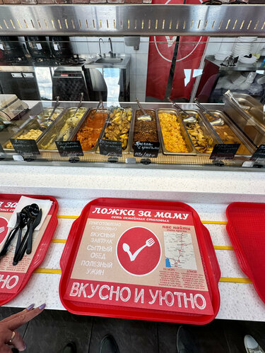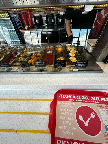 Столовая «ложка за маму». Удобное расположение, большой выбор блюд, ценник средний. По дороге в Крым мы остановились тут перекусить. Народу было не много, но все равно была очередь, т.к сотрудник был только один, он и накладывал блюда и пробивал на кассе. Все что взяли съедобно, по вкусу нейтрально, столовая одним словом. Перекусить по дороге, чуть передохнуть и размяться вполне себе.