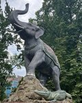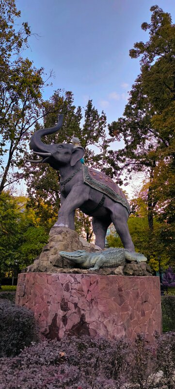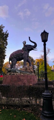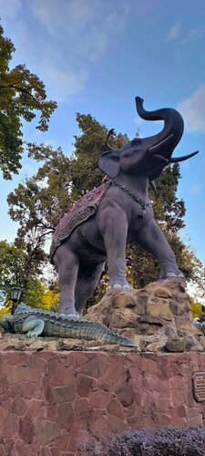 Специально ходила в сквер Дружбы народов, чтобы полюбоваться на эту скульптуру. До сих пор не могу найти информацию о том, почему именно такая скульптура была установлена здесь и какую смысловую нагрузку она несёт.😁 Мальчик с поднятой рукой, видимо, в приветствии, сидит на слоне, окружённом крокодилами. Ради интереса стоит сходить посмотреть. 😁