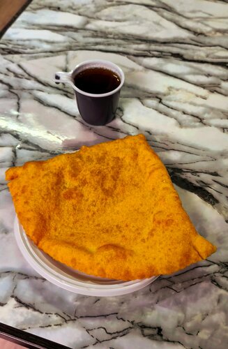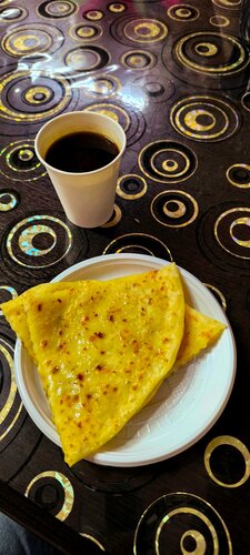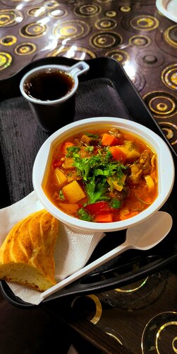 Это просто невероятное место!!! Сначала, когда туда заходишь, поражаешься интерьеру: потолок, стены, окна - всё сплошь оклеено денежными купюрами с автографами людей, посетивших это место. И их там ооооочень много, что говорит о невероятно высокой проходимости и популярности этого заведения. И, скажу я вам, это по праву. В Хычинном домике я ела балкарский хычин с картошкой и сыром, выпеченный на сухой сковороде и смазанный сливочным маслом, лагман - густой суп с овощами, говядиной и бараньим курдюком, но явным фаворитом стал карачаевский хычин (в меню он у них называется Еврохычин) с мясом, сыром и зеленью, обжаренный во фритюре. В обоих хычинах тончайшее, нежнейшее, вкуснейшее тесто с восхитительной начинкой. Девочки из нашей тургруппы ели и плов, и шулюм, и шурпу - всё невероятно вкусно. Отдельного внимания заслуживает кофе по-восточному, сваренный в турке - это невероятно вкусно! А их горный чай можно пить бесконечно! Кухня у них ооооочень вкусная! Надеюсь, что при следующем посещении всё останется на том же уровне.😁 Заказы отдают достаточно быстро, в течение 5-10 минут, в зависимости от количества посетителей. Всё свежайшее. Ну, и сама атмосфера, которую создают мужчины, которые принимают и выдают заказы, с их шутками-прибаутками - это отдельный вид искусства.😁 Так же в меню есть шашлык и ещё несколько блюд, свинины, естественно, нет, республика мусульманская. В продаже имеется огромное количество различного экзотического варенья и восточных сладостей. К посещению, однозначно, рекомендую и даже настаиваю.😁👍