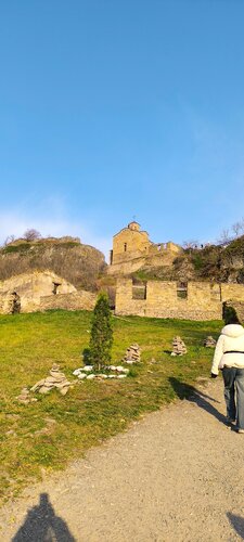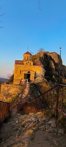 Невероятно атмосферное место. Храму более 1000 лет. Благодаря тому, что построен он был из исключительно природных материалов на белках куриных яиц и бычьей крови, он сохранился до наших времён. Несмотря на большую проходимость, в храме чувствуется намоленность и благодать, которую испытываешь в святом месте, особенно, когда осознаешь, что соприкасаешься с многовековой историей. Храм открыт для свободного посещения, в нём можно взять платок для того, чтобы покрыть голову и а-ля юбку. В КЧР почитают Георгия Победоносца, поэтому в храме много икон с его изображением. К колокольне, которая была построена уже в нашу современность, можно пройти по каменному мостику и, загадав желание, позвонить в колокол, но, пожалев местных жителей, которые слышат этот звон бесконечно, наверное, лучше не стОит.😁 Храм построен на скале, откуда открывается шикарный вид на посёлок имени Косты Хетагурова. Если вы хотите прикоснуться к истории, то к посещению очень рекомендую.