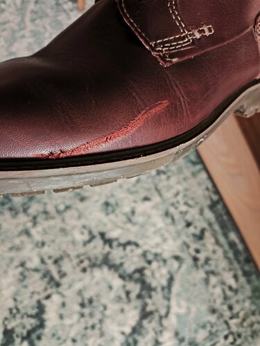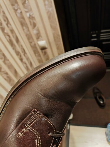 Работа по закрашиванию царапины на кожаном ботинке в целом сделана качественно, итоговый цвет получился чуть темнее, но зато царапины не видно. Минус звезда за то, что принёс ботинок в пакете, а вернули без него.