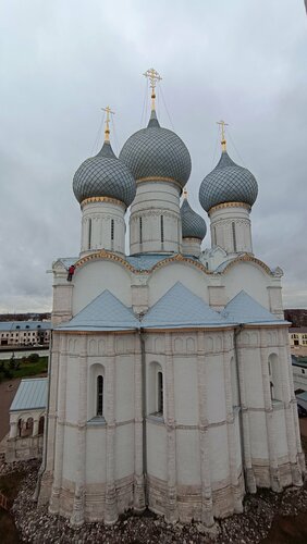Прекрасен и поражает!Кафедральный собор Успения Пресвятой Богородицы в Ростове Великом представляет собой выдающийся памятник древнерусской архитектуры, построенный в конце XVII века. Строительство началось в 1683 году и завершилось в 1687 году. Собор стал центром духовной жизни Ростова Великого и служил местом коронационных торжеств русских царей. Одна из высоких построек своего времени, достигала около 60 метров Богато украшен фресками и иконами, включая знаменитую икону Божией Матери "Знамение". Собор играл важную роль в истории русской православной церкви и культуры. Правда сейчас идет масштабная реконструкция, войти можно но внутри все в лесах. Но что то рассмотреть можно. Пол конечно особое внимание. Но чумтвуется мощь внутри и с наружи. Замерзает все внутри.