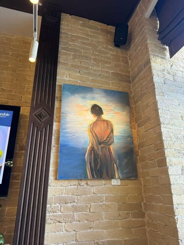 Безумно уютный ресторан: интерьер с невероятной красоты картинами и супер мягкими диванчиками, персонал очень любезный (и кстати, визуально очень красивый), кухня топ! • цезарь очень вкусный, особенно подача, вкусный соус, отдельно отмечаю гренки 😋 • фисташковый рулет просто улет, я бы съела килограмм 5 его, будь мой желудок резиновым • кофе вкусный (я брала латте), милый стакан, приятно держать в руке • девушка хостес просто милашка, разместила без лишних разговоров, к сожалению, забыла спросить имя)) • музыку также отдельно выделю: очень стильное музыкальное сопровождение, на мой взгляд В общем все понравилось: нам было приятно находится в этом ресторане, всем спасибо! ❤️