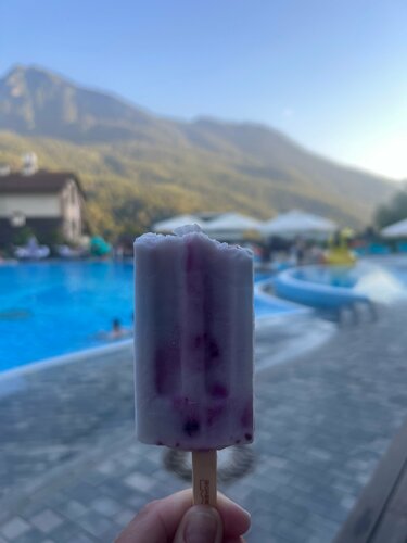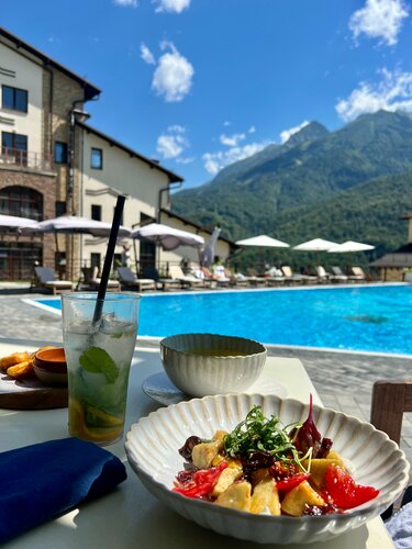 Потрясающее место! Из всех открытых бассейнов на Поляне, куда можно приходить с детьми, этот понравился больше всего. Спокойная обстановка, внимательный персонал, вкусная и красивая еда, чистота вокруг и главное конечно вид на горы! Спасибо за отлично проведённый день! Обязательно приедем ещё