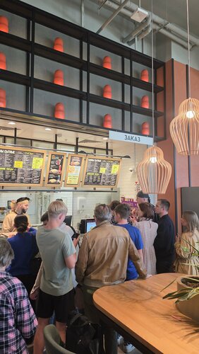 6 августа 2025 г Ожидание заказа больше 40 минут. Как такое вообще допустимо? Очередь на кассу человек 15, надо пол часа выстоять, а потом ещё и ждать когда сотрудники начнут шевелиться с выдачей заказа