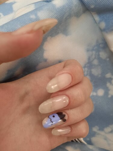 Ужасный салон, была у мастера Виктории, попросила сделать рисунок (фото ниже), а в итоге получила это чудо, по другому назвать это произведение искусства не могу. В ходе работы я попросила отзеркалить рисунок, в итоге мою просьбу проигнорировали. Ногти по форме разные, вместо формы миндаль получила миндаль "с углами". Лак лег пузырями. Были проблемы с оборудованием. Никому не советую. БОЛЬШЕ НЕ ВЕРНУСЬ!!!