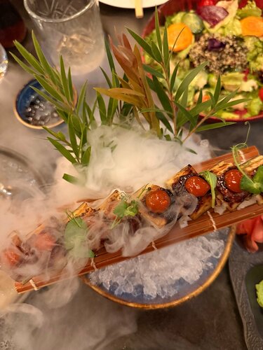Были на ужине во время проживания в отеле. Шикарно! Идеальный сервис,супер подача, безукоризненное обслуживание. Все было очень вкусно. И роллы,и мясо,и десерты!
