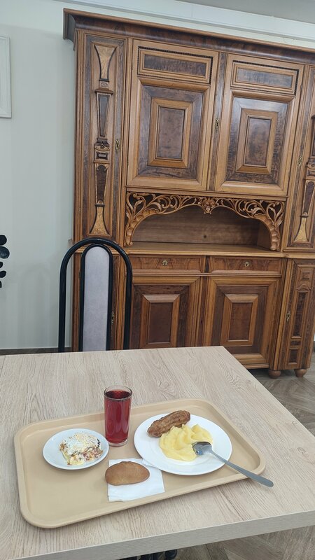 Вполне приличное место. Зашёл погреться и немного перекусить после посещения больницы. Светло, просторно, большой выбор блюд. Взял салатик с ветчиной, пюре, Люля из свинины и компот с булочкой, вышло около 400 руб. Не ресторан, но приемлемо)