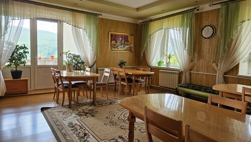 Отличная гостиница среди облаков на высоте 2000 метров над уровнем моря. Это наверно самая высокая гостиница, где я побывала. Очень уютная и домашняя обстановка. Есть Wi-Fi, хорошо ловит на 1 этаже и веранде. Слабее на 2 этаже и номерах. В каждом номере ФЕН! Оборудованная кухня, где можно найти кастрюли, сковородки, тарелки, чашки, ножи и всю кухонную утварь. Электрические чайники и холодильник для гостей. Приветливый персонал. За малую денежку можно постирать вещи. Имеется мангал и шампура на веранде. В гостиной уютный камин.