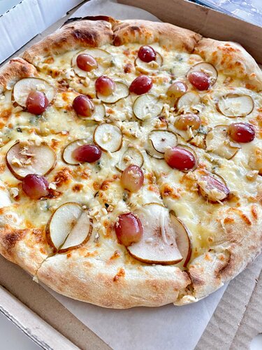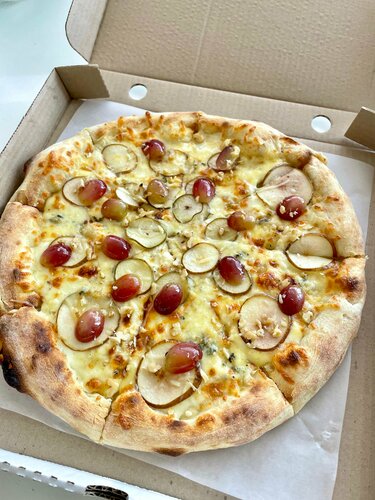 Мы с супругой очень любим пиццу с грушей и горгонзолой. Много где её ели, есть с чем сравнить и увидев что в этом ресторане она тоже есть, конечно же тоже взяли её попробовать) И первой пиццей были совсем разочарованы(( Очень мало сыра (начинки), горгонзола совсем не чувствовалась, так и пиццу передержали, была сухая и вся обгорелая по краям(( Первое впечатление было испорчено, больше бы тут не брали. Но тут ситуацию спасла прекрасный официант Анфиса) Она попросила у нас ещё один шанс для этой пиццы) И в следующий раз когда мы всё таки решили заказать её ещё раз, пицца была выше всех похвал!! Мало того, что теперь было хорошее кол-во начинки и наконец чувствовалась горгонзола, так ещё дополнительно добавили в пиццу дроблёные грецкие орехи, красный виноград и мёд! Сочетание просто бомба! Эта была одна из лучших пицц, которые мы пробовали!)) Если такой состав будет утверждён в меню, то мы станем постоянными клиентами на неё!)) P.S. Снял бы три звезды за первую горелую пиццу, но за великолепную клиентоориентированность и здоровую инициативу со стороны официанта Анфисы и повара, поставил бы 10 звёзд!)) Желаю многим заведениям такого же подхода со стороны персонала, что бы недовольного клиента превратить в постоянного)) P.P.S. Так же благодарность Анфисе, за рисунок котика на коробке)) Управляющие, нужно ценить таких сотрудников))