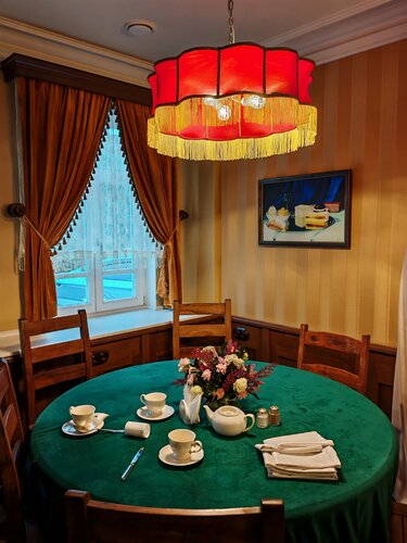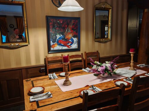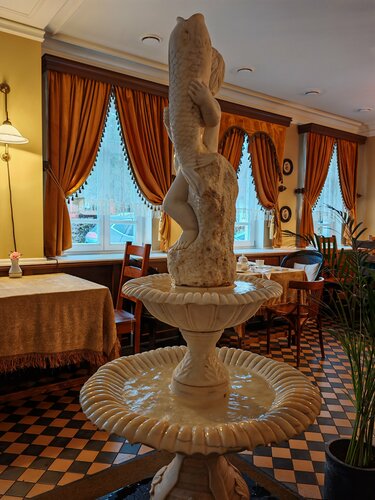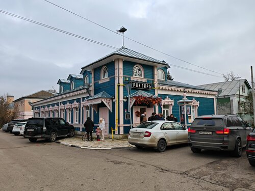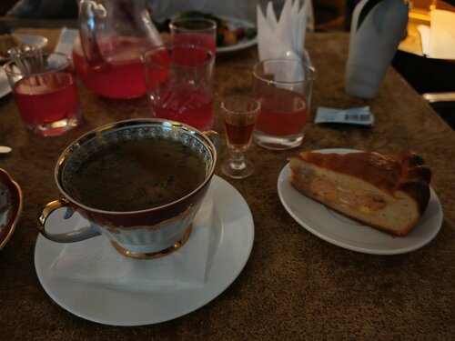 Трактир в симпатичном старинном особняке, зал стилизован под старину, красные абажуры, ширмы, в зале фонтан - мальчик с рыбой) находиться здесь приятно. Порции оказались скромные. Решили взять уху со стерлядью, официант сразу предупредила, что это не уха в обычном понимании, здесь ни картошки, ни моркови, только бульон с кусочком рыбы, к нему подают кусок пирога с рыбой и в рюмочке приносят мадеру, предлагая добавить ее в бульон для придания пикантности ухе. Не впечатляет, уха никакая... А вот за щучьи котлеты - пятерка!) Обслуживание быстрое, обходительное. В целом место приятное, аутентичное. О посещении не жалеем.