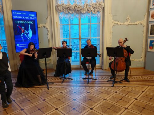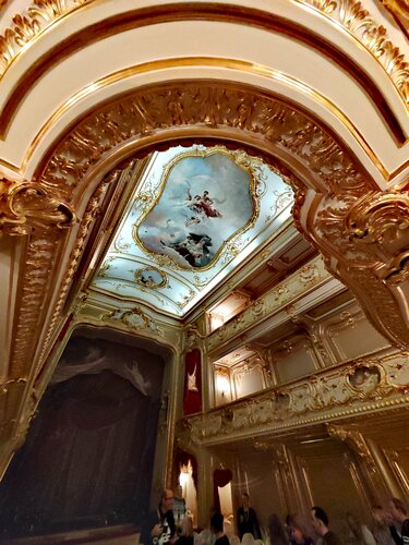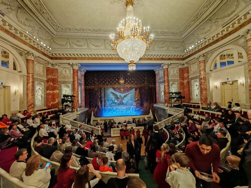 Очень хотелось посетить это место в Эрмитаже. И несмотря на то, что репертуар здесь на Новый год, как везде, и это Щелкунчик, решили, что увидеть Щелкунчика в Эрмитажном театре - это вполне по-новогоднему) В общем-то так и оказалось. Можно даже сказать, что этот зал сам по себе кажется игрушечной декорацией спектакля) как бы не настоящей) он очень камерный, все здесь историческое, уж не знаю, как-то обновляли ли кресла в зале или нет с доисторических времен, но почему-то получается, что ты всегда сидишь или скособоченный или со свёрнутой шеей)) кресла амфитеатра продавленные, и ты поневоле заваливаешься в какую-либо сторону) оркестровой ямы нет и оркестр находится сразу перед партером из 2-х рядов. Представление было уровня балетной школы, весёлое, солисты при этом старались изо всех сил) оркестр играл хорошо) В антракте в фойе играл струнный квартет, какая-то маленькая девочка танцевала под музыку, пока мама снимала танец на смартфон, было празднично) мы не пожалели, что побывали в этом театре, что называется, "ставь псису"))