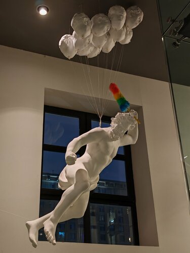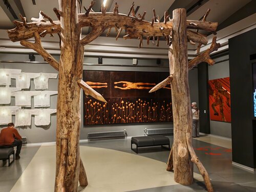 Пожалуй, этот музей - главное открытие этой поездки в Петербург. Современное искусство разномастное и разнокалиберное, и музеи представляют разные его компоненты, не всегда удачно и доступно для зрителя, но в этом музее все соединилось в какую-то целостную экспозицию, рассматривать и гулять по залам которой - просто удовольствие. Здесь и поющие берёзы, реквием из белых рубах, какая-то модель биполярной активности, деревянные столбы проекта Границы империи, живая живопись, рентгеновские снимки, голографические космические объекты, интерактивные эксронаты и какое-то невероятное многообразие всего другого! Половина здания - постоянная экспозиция, другая половина - временные выставки. Большое уютное пространство кафе, всё оформлено искусственной зеленью, здесь очень уютно, пространство будто обволакивает тебя. Здесь чудесно, наверное, посидеть и с ноутбуком. Оригинальная ценовая идея музея: покупая разовый билет и пройдя легкую регистрацию, ты получаешь возможность посещения музея по этому билету в течение 6 месяцев. В это пространство художественной свободы хочется возвращаться, тем более что музей обновляет выставки достаточно часто. Очень рад знакомству с Эрартой! Музею спасибо!)