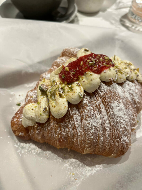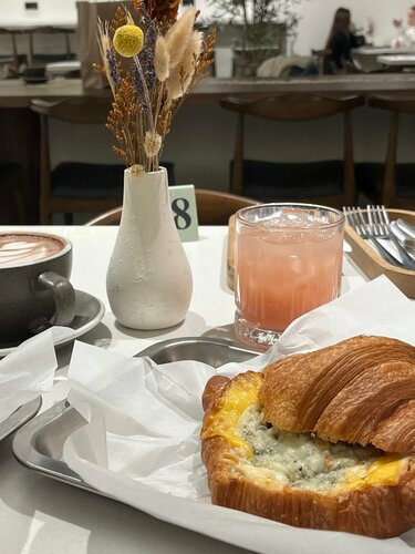 Очень приятное место! Внутри всё аккуратно и красиво, персонал внимательный и дружелюбный. Порадовала вода на столах, и то, что регулярно подходили и уточняли, нужно ли подлить. В меню хороший выбор позиций. Отдельно хочется отметить круассан с маслом и абрикосовым джемом и пасту с грибами — было очень вкусно.