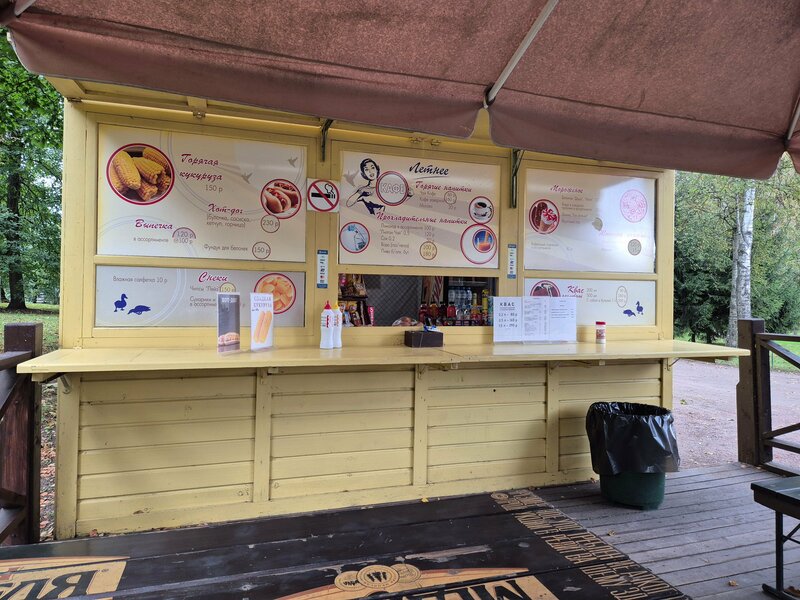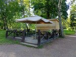 В холодный промозглый день приятно присесть под навесом, попить кофе или чай, после прогулки по живописному парку.