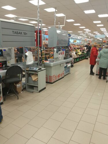 Обычный Магнит, всё нормально, но почему-то внутри здания не работает мобильная связь. Еще внутри есть Магнит-косметик и типичные для таких мест небольшие торговые точки - пивняк, аптека и прочая мелочёвка, есть также банкомат сбербанка около касс Магнита