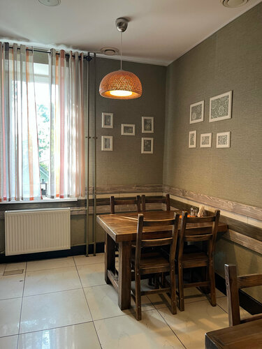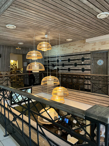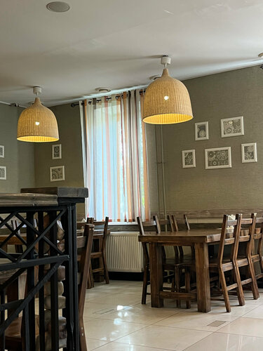 Очень атмосферное место, вкусная еда, брали мясо в брусничном соусе (местная фишка, советую попробовать), местный десерт шарлотка с мороженным, куриный шашлык просто тает во рту, в греческом салате бесподобный соус, нигде больше такого не встречали! Советую к посещению, кухня стоит того, что попробовать и вернуться 🤩