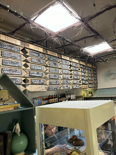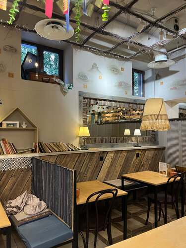 Очень атмосферное место с доступными ценами. Безумно вкусные десерты, блинчики, всегда есть суп и большой выбор кофе. Приветливый персонал, всегда подскажет где что лежит.