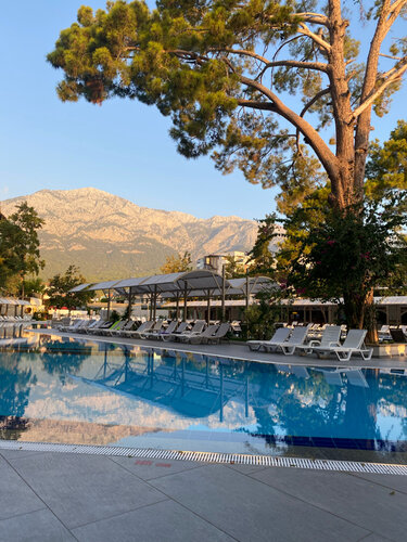 Прекрасный отель. Были не однозначные отзывы, все отмелось. Сейчас лежу в этом отеле, прекрасный вид на горы и море, питание разнообразное, толп нет, сами создаёте. Лежаки есть, есть один неприятный момент-на пляже нет пологов для коляски и ходьбы, не удобно по мелкой гальке ходить. За это минус звезда.