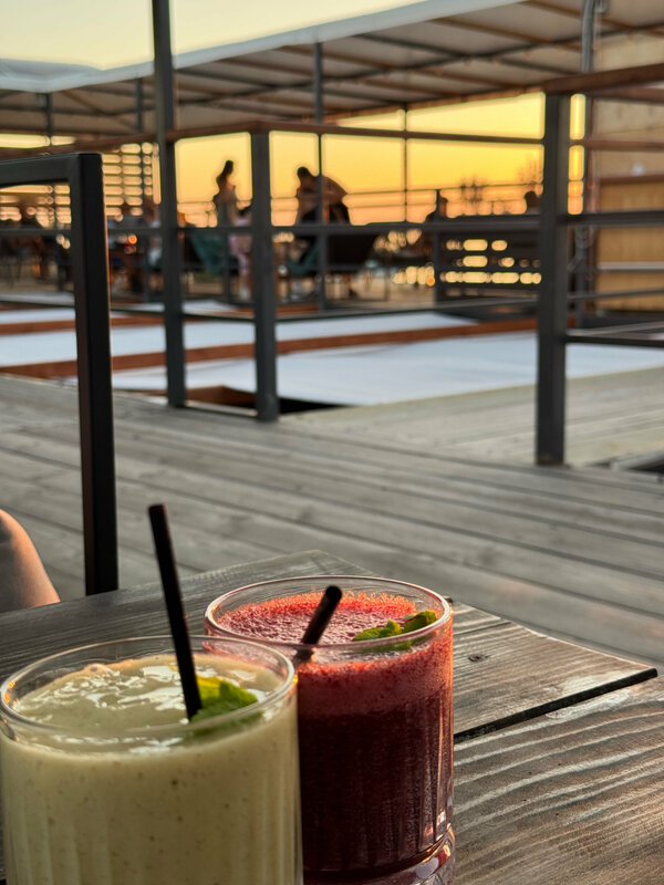Из плюсов - очень учтивый и клиентоориентированный администратор, просто браво и слишком красивый закат у моря, правда последнее не является заслугой заведения. Еда готовится дольше обычного, например рис вок с говядиной пришлось ждать целую вечность. В заведении очень любят количество 4-ровно столько крошечных кусочков говядины было в огромной порции риса. И столько же в салате цезарь. В меню не указан состав блюд и напитков, так что будьте осторожны, ведь названия смузи по трем ингредиентам, совсем не означает, что их там всего три, обязательно найдется 4 ингредиент. Лучше уточнять составы. Ценник выше среднего для подобного рода заведения, но и это еще не главное. Туалет, где должно и обязано быть чисто едва ли убирают, при большом количестве посетителей допустимо ли это? Вопрос без ответа, но грязь, мусор и неопрятность туалета вызывает желание не есть в этом месте…
