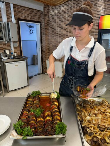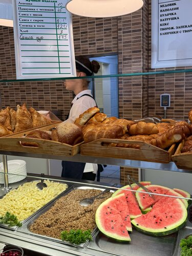 Отличное место, с приятными ценами и комфортной едой. В целом можно на любой вкус выбрать блюдо. Обстановка хорошая, ребята на раздаче молодцы, быстро работают и блюда знают) В столовой чисто и уютно, много места. Одно но - люди, с культурой мухи, считающие, что мы все мечтаем увидеть их волосянные телеса и заходящие в столовую в одних плавках и солнцезащитных очках. Думаю точно также как уточнять у водителей на пляж они или в столовую, было не плохо уточнять таким людям, что пляж напротив и есть правила общепита. В остальном в столовой вполне прекрасно можно пообедать и взять что нибудь вкусненькое с собой.